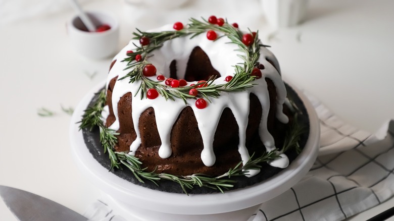 If you've not experimented with bundt cake pans before, this holiday season is the time. Double or triple layering differently sized bundt cakes on top of one another (largest on the base, smallest on top) makes them look like a Christmas tree. You don't even have to frost them to achieve the effect — just drip a little glaze on the cakes if you so choose and serve them right up.