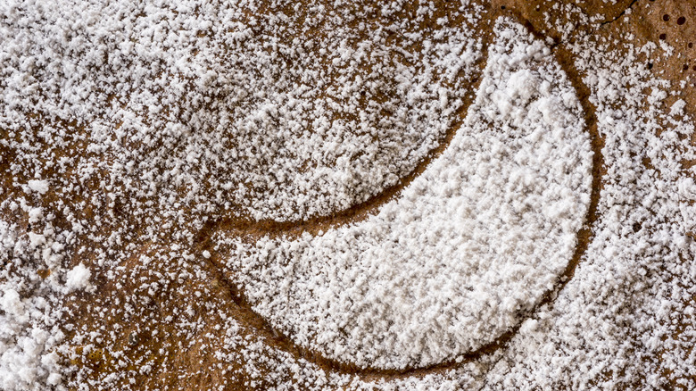 No cookie mold? No problem. You can also cut the shape you want out of parchment paper, place it onto your cake, sprinkle powdered sugar all around it, and then lift the parchment paper up to reveal a negative space design. This trick is absolutely adorable and will save you a ton of time when decorating your cake, too — no frosting or cake-decorating experience required.