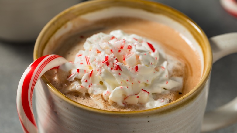 And, because extra toppings are always a great idea, finish the drink off with whatever you have on hand — maybe some chocolate shavings or crushed peppermint candies. You could even pop a whole candy cane into the glass or mug to stir as you slurp!