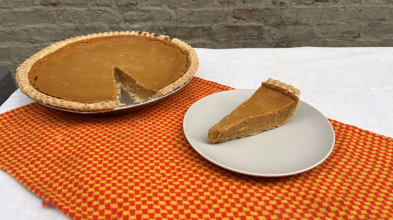 As soon as leaves start falling, pumpkin spice is out in full bloom. Whether it's the ubiquitous PSL, Pop Tarts, or even cream cheese, every brand imaginable cashes in on pumpkin spice season. If you really want to savor that signature blend of cinnamon, nutmeg, allspice, and cloves, you have to go straight to the source: pumpkin pie. It's an American classic and a regular on the Thanksgiving table, but more than that, pumpkin pie has become an emblem of autumn. The sweet, spiced dessert, classically served warm with whipped cream, is so delicious that it's easy to forget it's made from squash. Classic pumpkin pie itself is as simple as can be. Blended pumpkin, eggs, and sweetened condensed milk is all it takes to whip up pumpkin pie's custardy filling, but even that can be too much trouble sometimes.