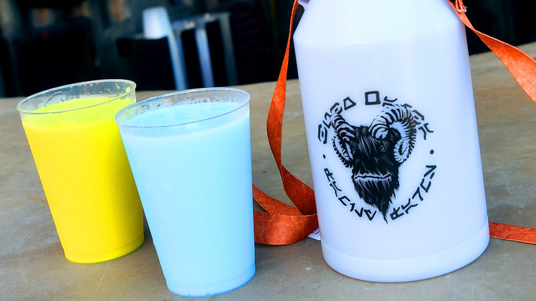 Seeing Luke Skywalker drink blue milk in "A New Hope" and green milk in "The Last Jedi" gave fans decades of time to speculate about what each one must taste like. Thanks to the "Disney magic" of Galaxy's Edge, you can finally taste for yourself. According to the milk stand menu, blue milk has "alluring fruity characteristics," while green milk has "zippy citrus and tropical characteristics." For those who enjoy spirited cocktails, you can even get a blue milk with rum or a green milk with tequila. Nowhere near the most expensive drink at Galaxy's Edge, both milks are still solid beverage choices in their own right.