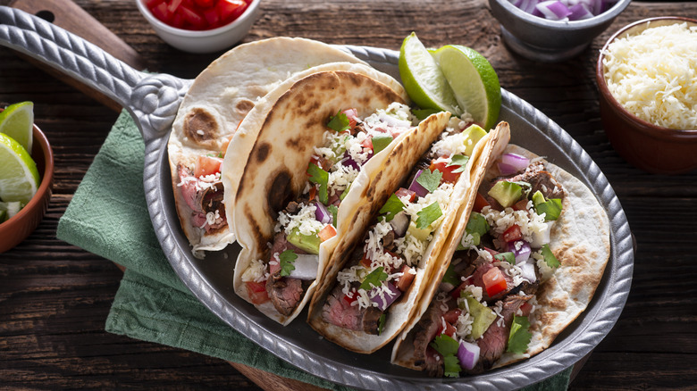 It's often a challenge to determine what kind of steak to bring home, especially when you're staring at an endless selection of raw meat that basically all looks like, well, raw meat. One rule of thumb for novices is that the more reasonably priced cuts of steak can be on the tougher side, but they're good candidates for a nice marinade. Often, these tend to be the most popular cuts of steak because of their affordability and versatility. Flat iron steak and flank steak are two such cuts that share popularity due to their lower price, beefy flavor, and flexibility when it comes to cooking. The two cuts have several differences, so understanding the distinct characteristics of each cut can help you make a selection.