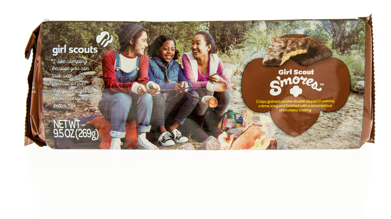 It's no surprise that the Girl Scouts, who allegedly invented the iconic s'mores treat made up of graham crackers, marshmallows, and chocolate, decided to make a couple of varieties of cookies with the same name. Both manufacturers, Little Brownie Bakers and ABC Bakers, released their own Girl Scout S'mores in 2016 — but only one has stayed on the market. Simply made with a graham cracker cookie, a thin layer of marshmallow, and dipped in chocolate, the latter Girl Scout S'mores cookie was discontinued in 2021. Though the cookies' time on the market was short-lived, they were well-loved. Thankfully, you can find similar cookies in most grocery stores today through Keebler's fudge grahams (while they're missing the marshmallow, they're still very close in taste).