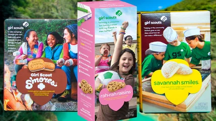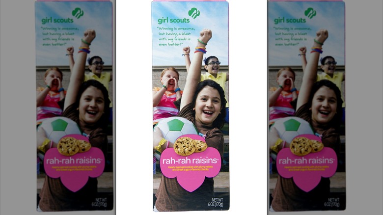 As you might expect, the Rah-Rah Raisins featured raisins, along with oats and chunks of Greek yogurt. They were introduced by Little Brownie Bakers in 2014 alongside two of the first-ever gluten-free Girl Scout cookies. This was also the year that the Girl Scouts launched personalized websites for its troop members, so they could sell cookies online. At the time, then-CEO Anna Maria Chávez stated (via ABC News) that this method "teaches skills like online marketing and ecommerce, all in a digital space that puts an emphasis on learning, fun, and safety." While the online cookie sales program has since boomed, the Rah-Rah Raisins were taken out of the Girl Scout cookies lineup in 2016 due to their low demand.