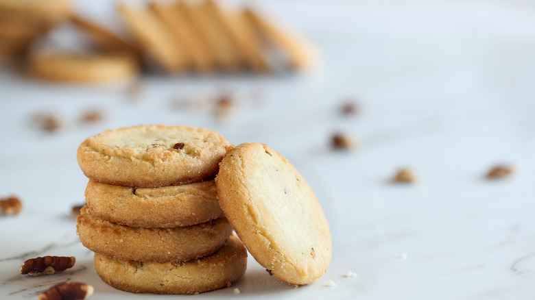 As their name suggests, the Pecan Shortees that were sold from 1985 to 1987 by Little Brownie Bakers were shortbread cookies with toasted pecans. Although these treats were short-lived, their flavor profile was unique to any of the other Girl Scout cookies on the market at the time. But even though it's been about 40 years since these cookies were last sold, that doesn't mean you can't find something similar today.