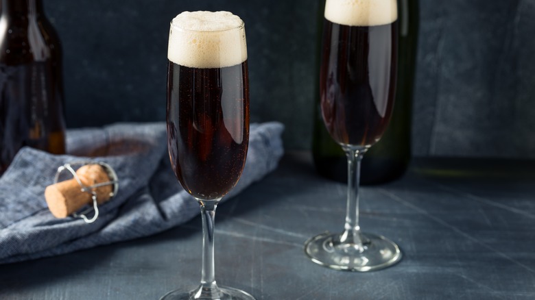 If you don't want to do any shaking, however, and just want to get sipping a caffeinated concoction as soon as possible, you can crack open a Russian Imperial stout and add espresso, port, and Galliano sambuca black for a delicious after-dinner drink. This interesting mix offers coffee notes tinted with delicate waves of chocolate, licorice, and cloves, all while packing a boozy punch. It's a winning libation, and fans of tiramisu, bold beers, and after-dinner espressos will savor this tipple. Beer cocktails like this are ideal to wind down evenings and cap off a meal, and you'll be relieved of the challenge of having to choose one among your favorite go-to drinks.