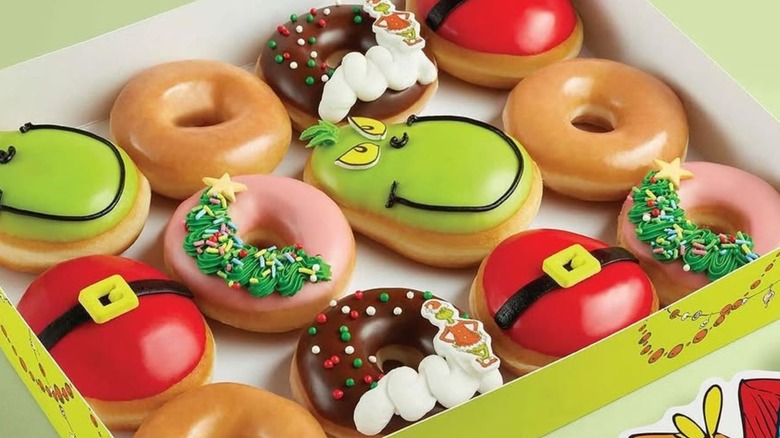 Krispy Kreme knows how to do the holidays right. Last year, the popular donut chain honored the 20th anniversary of the Christmas classic "Elf" with a collection that made sugarplum dreams come true, and this year, Krispy Kreme is teaming up with The Grinch to make even the Grinchiest hearts grow three sizes, according to a press release. Starting on Friday, November 29, 2024, the Merry Grinchmas Doughnut Collection will bring sweet joy to participating shops for a limited time. Inspired by Dr. Seuss's "How The Grinch Stole Christmas!" this collection is a whimsical tribute to the holiday classic we all know and love. So, what's on the menu for this Grinch-tastic lineup?