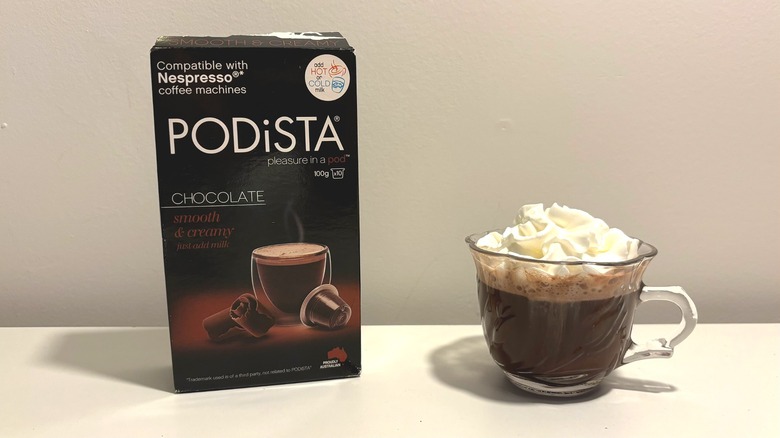 I chose to do the latter, and I'd recommend that anyone who enjoys dark chocolate does the same. Pop in a pod and press the lungo button to dispense a 4-ounce cup of sipping chocolate. Rather than diluting it with milk, top it with whipped cream (and your favorite hot chocolate spices) and dig in. This method yields a thick, indulgent cup that isn't overwhelming and makes for the perfect dessert accompaniment. On the other hand, if you want a mellower cup, feel free to brew a lungo-sized amount and add some steamed milk before topping it off with whipped cream and marshmallows.