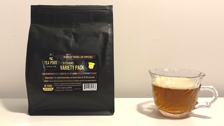 Personally, I liked the potency of a 4-ounce brew of the company's peppermint tea, which was refreshing and heavily minty. On the other hand, I think I'd enjoy its hibiscus pod more as a large brew. Or, I'd use the smaller brew as a tea ingredient for a mocktail. It was floral, jammy, and pretty juicy — a delightful brew, in my opinion. The jasmine tea pod was also bright and floral. My only complaint was that it's slightly bitter, but I think it would be delightful with some honey. The company's paradise pod was the one that took me the most by surprise. It was a fruity black tea, a bit unlike any tea I've ever tasted, but I enjoyed it. I could see the perfumey scent being off-putting to some consumers, but I'd urge you to give this a try before eschewing it.