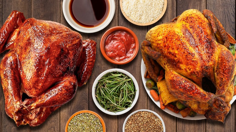 With Thanksgiving coming up, a lot of people have turkeys on their minds, whether it's getting out their grandmother's recipe or debating whether deep-fried or air-fried turkey is better. Of course, there are so many ways to cook a turkey, all delicious for different reasons. Whether you're a turkey purist who prefers to only roast their turkey or you like to get the smoker out for the big bird, cooking methods aren't the only important factor in getting a really tasty result. What and how you season your bird will play a big role in how delicious it is.