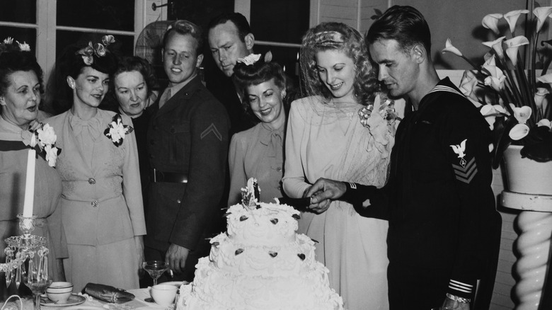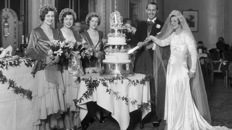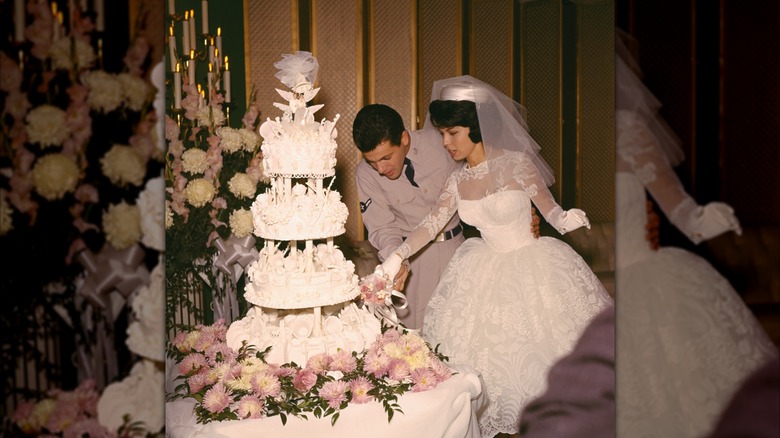 Underneath all the icing, buttercream, almond paste, and decorations such as edible flowers, bells, and cake toppers, vanilla cake was still the most popular choice for American weddings, followed by yellow cake, per Food52. From the 1970s until the 1980s, the most fashionable cakes were the ones with the most jaw-dropping configurations, such as tiers that expanded horizontally.