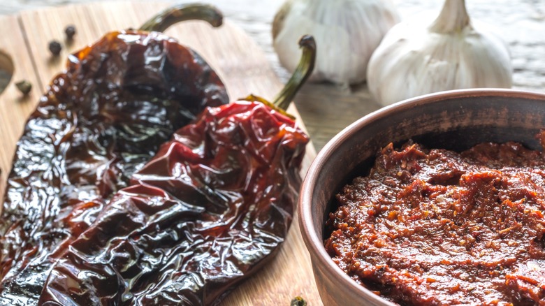 Chipotle and salmon is another great duo. A tiny can of chipotles in adobo is the smoky ingredient to take your tacos to the next level, and it can do the same for your fish. The hot peppers bathing in a blend of tomato, sugar, vinegar, onion, and garlic pack a real flavor punch in just a small amount. You can spread the sauce surrounding the chiles on the fish, or go full-force and finely chop the peppers before rubbing the paste all over your salmon filets. From there, you can let the fish marinate in the spicy mixture for a while in the refrigerator, or just sear it directly in a cold skillet for the juiciest salmon imaginable.