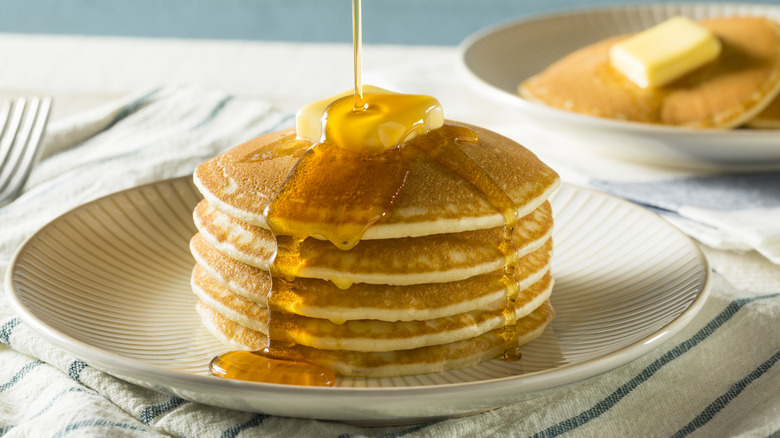 There are only a few ingredients needed, including butter, buttermilk, sugar, and baking soda. Combine, heat, and you're done in about 10 minutes. It's perfect for waffles, pancakes, biscuits, French toast, or even ice cream — and there are a few ways you can modify it, too. Add a dash of vanilla, almond extract, maple extract, or ground cinnamon and pair that with pancakes and waffles upgraded with spices like cardamom, allspice, and even matcha for a breakfast that you'll be looking forward to all week.