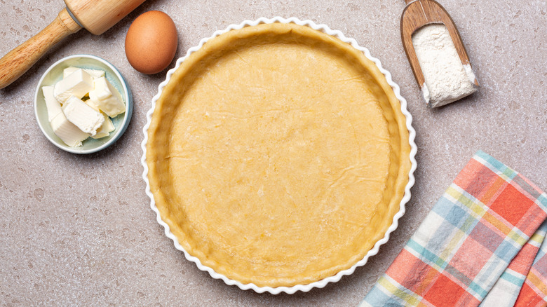 It takes just one simple step to keep your pies from getting soggy, and that's to brush the crust with either an egg wash or a layer of Karo syrup. This works particularly well with fruit pies, and you can either add this protective layer after blind-baking your crust or– if you're not blind-baking — just add it to the raw crust right before you add your filling. Make sure the layer is generous enough to prevent moisture from leaking through, and you'll never skip this step again.