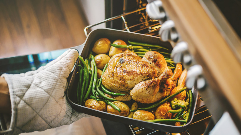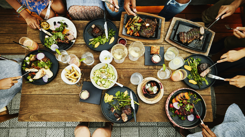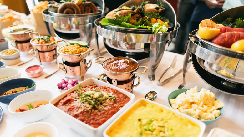 There's bound to be one buffet dish that's going to take much longer to cook than all the rest. If you have meat as a main dish, for example, you might want to get started on it long before your guests arrive. Cooking your main dish early will give you more time and kitchen space to focus on sides and dishes that have shorter cook times, which can be done closer to the time your guests will be arriving. Plus, you never want to leave a main to the last minute — if things go wrong or take longer than expected, you'll end up leaving your guests hungry. It's always better to be missing a side than the main dish.