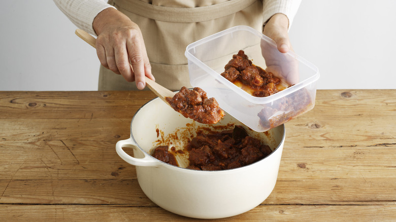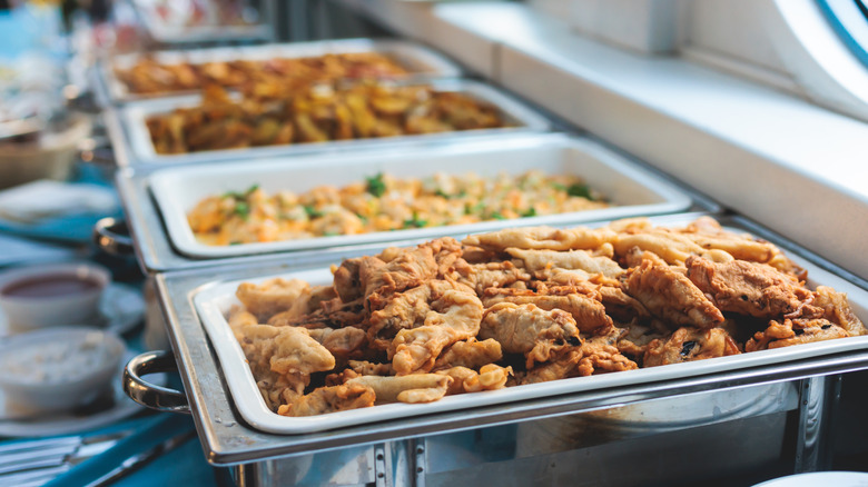 If you're not keeping your food at the proper temperature (below 40 degrees Fahrenheit for cold dishes and above 140 degrees Fahrenheit for hot dishes), harmful bacteria will start to grow after two hours. Buffets can run long, so make sure you're either planning on storing your leftovers safely before two hours have passed or that you have the proper tools needed to help you store your food at safe temperatures. It might even be a good idea to grab a thermometer to have on hand, so that you can check to make sure your food is still safe to serve. Keeping leftovers from food that has been stored on the counter too long (or continuing to serve food at a buffet that hasn't been kept at proper serving temperature) can make you and your guests dangerously sick.