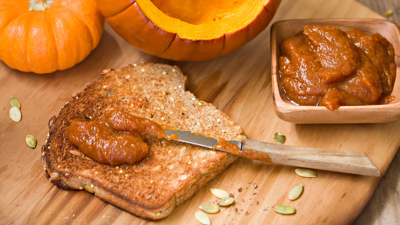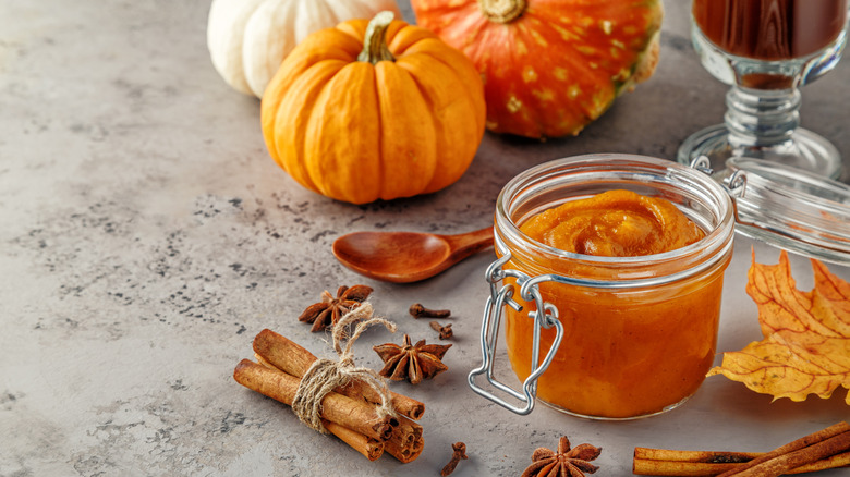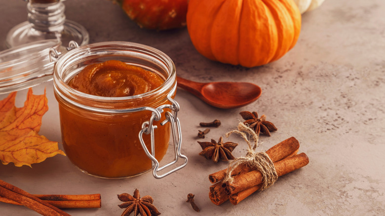 Creamy, velvety, sweet, earthy pumpkin accented by warming spices we can put on just about anything? Yes, please — pumpkin butter is like a big hug of fall flavor. You can spread it on toast, swirl it into cakes, spoon it over ice cream, and even use it to make next-level, at-home pumpkin spice lattes or tasty pumpkin butter-infused cocktails. Making pumpkin butter at home is so easy and lends itself to so many mouthwatering uses, it's hard to think of a more worthwhile seasonal project. But, you do have to know just how to both whip it up and store it so you have and maintain the best pumpkin butter possible.
