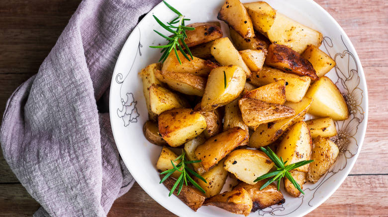 "To create this Umami Seasoning Blend," explains the Trader Joe's website, "we began with kosher salt, and used a flavor base of porcini and white button mushrooms — earthy mushroom flavor really is the cornerstone of umami, which is why we named it Mushroom & Company." The blend also includes onion, mustard seed, thyme, and red and black pepper — ideal for bringing savory depth to potatoes at $2.99 per 2.1-ounce jar.