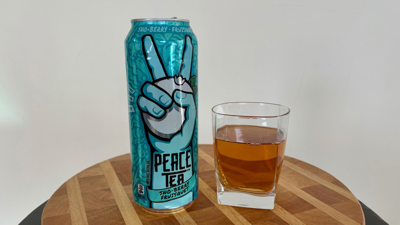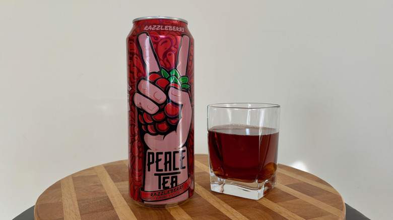 Peace Tea describes Razzleberry as a raspberry-flavored iced tea, though the drawing on the front of the can looks more like a cluster of cranberries or very red grapes. Since only natural flavors are credited in the ingredients, it's hard to know for certain all that goes into the blend.