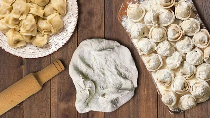 Perfect homemade dumplings start with perfect dough. If you're a novice in dumpling-making, don't fret: "Compared to lots of dough-based recipes, Chinese dumpling dough is the simplest," says Wei Guo. "If you keep it simple, it's better. If you think too much, you might get into trouble." According to Guo, the cheapest all-purpose flour works perfectly fine. What you really need to pay attention to is the protein content. Aim for flour with 10-11g of protein per 100g for that ideal chewy texture. But if your flour's a bit higher in protein, no worries. Just add a splash more water or mix in some cornstarch to dial it back.