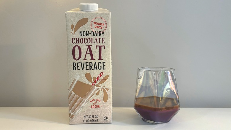 Finally, my favorite of Trader Joe's non-dairy beverage selections — its Non-Dairy Chocolate Oat Beverage. Given that I'm not a fan of chocolate milk or Trader Joe's regular oat milk, my expectations for this one were slim. However, it ended up being a rich, fairly indulgent drink that I can see a ton of uses for. If you grab a box the next time you're at the chain, it may just become a versatile staple in your pantry.