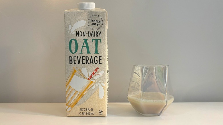 Though I'm sure Trader Joe's Non-Dairy Oat Beverage isn't the worst oat milk out there, I'm also quite certain it's not the best. If you're looking for an oat milk for the sole purpose of drinking it as a solo beverage, I'd pass this one up entirely. To its credit, Trader Joe's oat milk is made from only two ingredients: water and hydrolyzed oats. Consumers simply have to weigh the pros and cons here — are you willing to sacrifice some textural integrity for an oat milk that's ultimately subpar to versions that contain more additives? Personally, I would be.