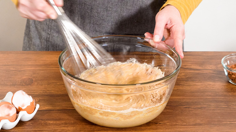 To make a Duff Goldman-approved cake with the instant mix, start with one of the best boxed cake mixes. It's best to start with dry ingredients before the wet ingredients like eggs and oil go in, so add the spices to the bowl with the instant blend first. Unlike cooking, you can't taste as you go with baking, so don't overdo the spices, especially with bold options like cinnamon or cayenne pepper.