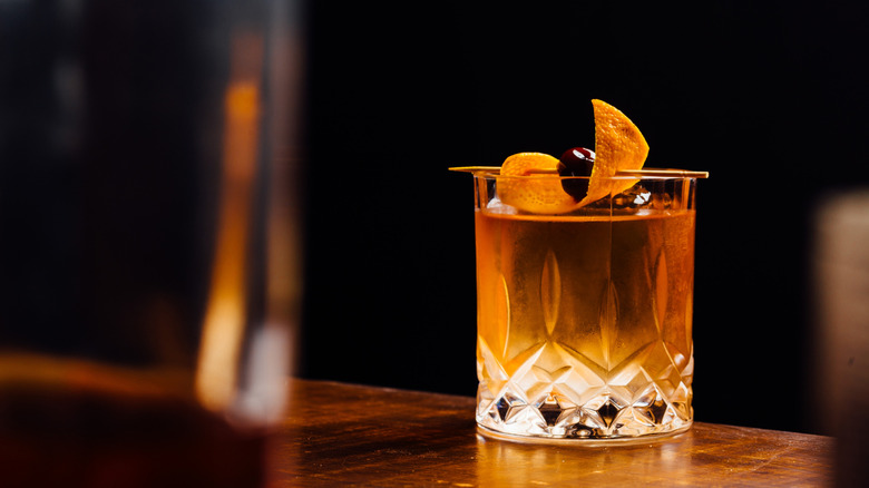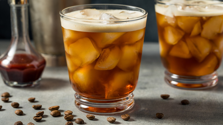 "Similary, [coffee-infused bourbon] can be used in the old fashioned with amaro as a modifier and a touch of Demerara syrup," Anton Kinloch says. Because the iconic old fashioned cocktail is so simple and straightforward, it's a real showcase for bourbon. You're essentially accenting the spirit with Angostura bitters, Demerara syrup, and lemon and orange peel garnishes. So, of all the different great bourbon options for your old fashioned, a coffee-infused one has the greatest potential to make a flavor impact. You'll really get that coffee flavor mingling with the bourbon's best known tasting notes, while the Demerara syrup deepens and warms up that profile with its elements of caramel, molasses, and toffee.