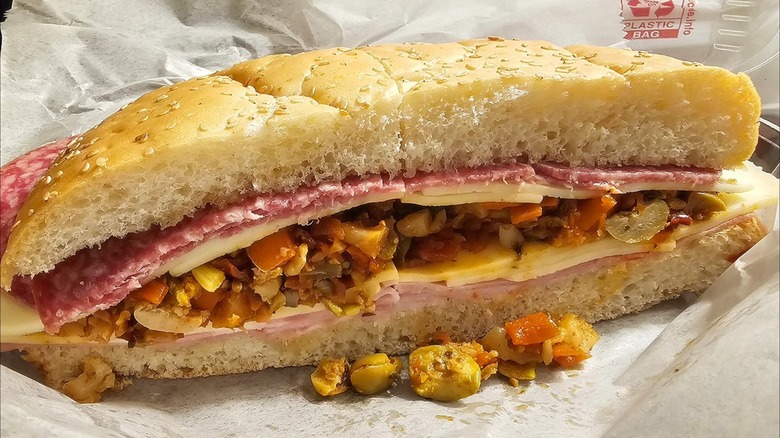 Fans might know that Anthony Bourdain's favorite late-night spot was New York City's famous Katz's Deli, but when he was in New Orleans for an episode of "A Cook's Tour," he was already at the hotel when hunger hit. The answer was to ring Verti Marte and order a muffuletta sandwich, one of the city's many iconic dishes. Verti Marte's version isn't just any muffuletta though: it's been lauded by numerous food writers and publications — including Bourdain, who ordered the sandwich alongside a bottle of bourbon and a pack of cigarettes.