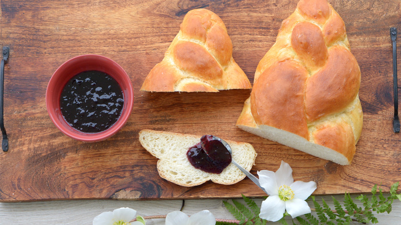 Many cafes in Zurich serve dedicated zmorgä menus, making this a meal to be savored both at home or in public. Breakfast sandwiches aren't a thing in Switzerland, although there's nothing stopping you stuffing some landjäger and Swiss cheese (gruyere is the most popular cheese eaten in Switzerland) into a gipfeli croissant. Landjäger is smoked Swiss beef sausage flavored with red wine, cumin, pepper, coriander, and garlic. The closest thing to a breakfast pastry you're likely to find in Switzerland is the zopf with jam, or the schoggi gipfeli, aka a chocolate-filled croissant. Ham-filled schinkengipfeli are also a popular savory variation of the croissant, although you'll more often find them served as a lunch food or snack with a drink.