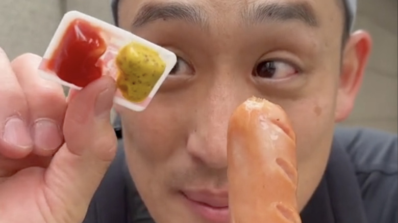 It's not that flavor or texture that makes Japanese sauces better, but the way they're designed. In America, when we get sauce packets from spots like Taco Bell or Wendy's we need to use two hands to first, open the packet and then squeeze the sauce out. In Japan, using just one hand, you can both open and squeeze the sauce out conveniently onto your food, like fries, salad, or a hotdog. Over on TikTok Jeff Kim of @thecrunchbros shows off a combination sauce packet that includes both ketchup and mustard. After purchasing a hotdog from a FamilyMart in Japan, one of the many snacks you can find at Japanese convenience stores, Kim cracks open the sauce packet with one hand and proceeds to spread both mustard and ketchup seamlessly over his hotdog with the same hand.