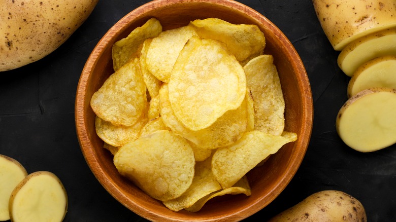 Blackening seafood, chicken, or vegetables on a grill or in a hot pan is a traditional Cajun cooking style that yields a spice-forward, crunchy crust on anything it graces. But why not think outside of the box and use a similar approach on potato chips? Grab some Cajun seasoning, enhance with a pinch of extra cayenne pepper, and you've got yourself spicy Louisiana-style potato chips. Commercial Cajun seasoning is easy to find in most major supermarkets, but it's also easy to whip up a batch of homemade Cajun seasoning in your own kitchen.
