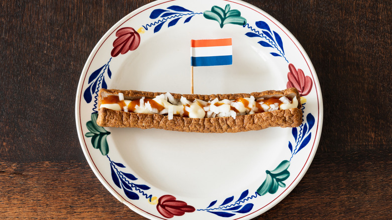 Usually, frikandel is simply eaten as-is, which accounts for most of its appeal as a quick and fuss-free snack that still packs a flavorful punch. For those who are after a little more sustenance or want to avoid the risk of greasy fingers, it's also sometimes served as a sandwich. It's also often topped with a sauce like mayonnaise and curry ketchup, resulting in a dish not too dissimilar from Germany's famous currywurst. This is a popular means of eating frikandel — which also entails stuffing the sausage with the mayo and curry ketchup along with chopped raw onion after cutting it down the middle — and the variation known as frikandel speciaal.