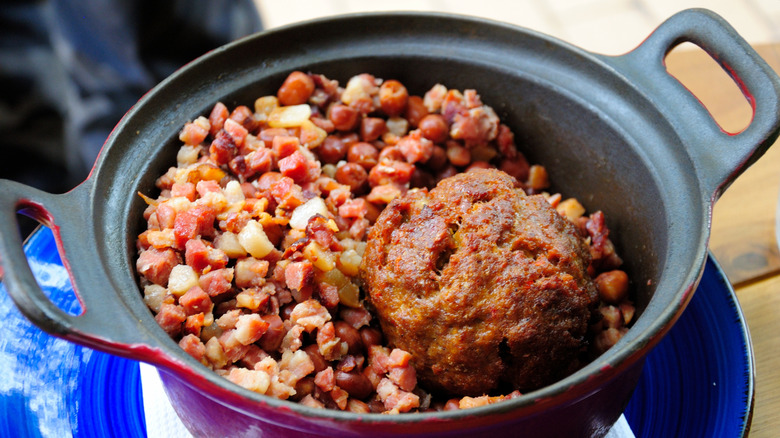 You're likely to find stamppot on a restaurant menu during a winter trip to the Netherlands, and you should by no means pass it up. A hearty and warming traditional dish, stamppot is made from a satisfying mix of mashed potatoes and various vegetables, alongside savory meats like smoked sausage or bacon. The ingredients used for stamppot can vary based on the season and region you are in, as well as on account of differing family recipes and innovative twists, making stamppot a highly versatile and customizable dish — ideal if you're looking to delve into Dutch cuisine at home. Amongst the most common vegetables used in stamppot are kale, carrot, and onion, although sauerkraut is also a fairly popular choice, used in a version of the dish known as zuurkoolstamppot.