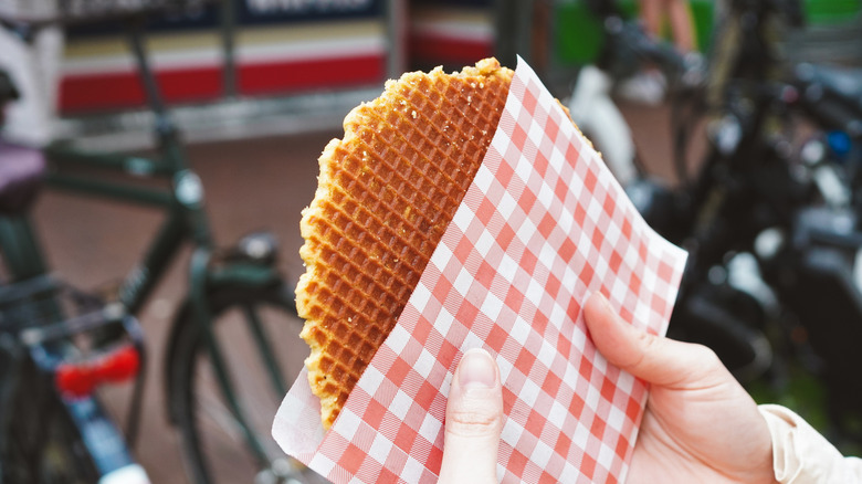 Stroopwafels are best eaten warm, ideally fresh out of the iron at a market or fair, ensuring that the caramel is perfectly gooey. However, if this is not an option for you in the foreseeable future, you may wish to head to a European supermarket or a chain grocer with an international aisle near you (or, simply visit an online store) to pick up a pack. All you'll need to do is pop them under a waffle iron or in the microwave for a short time at home — and enjoy for the most authentic eating experience.