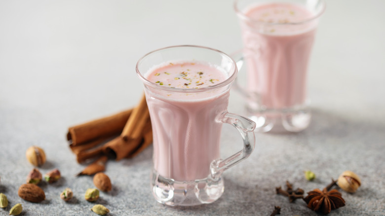 Many of these unique hot drinks from around the world are dark, robust, and earthy. Kashmiri chai is perhaps one of the more objectively beautiful, delicate, and unique hot drinks when it comes to appearance. That's because this beverage, also known as Noon chai, is pink!