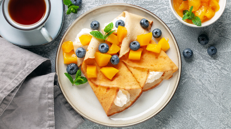 Stewart advises not to overdo it with the fillings, due to the fine texture of the crepe. Large pieces of food that could burst through it are not an option, and if you want the ingredients to be cooked when you eat it, you will need to cook them beforehand. She recommends making 'leftover crepes', which work well since everything will already be cooked. For dessert, finely chopped fruit will work, and you can spread Nutella or whipped cream onto the crepe itself. With so many different options, you can see why crepes make Stewart's list, and with a little experimentation, you can find your go-to flavors too.