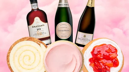 A glass of Delamotte Rosé Champagne is a palate-pleasing treat by itself. Adding a fruity, nutty, creamy Strawberry Shortcake cookie from Cumbl transports your taste buds to flavor heaven. Crumbl's cookie delivers the classic strawberry shortcake flavors, including a cakey sugar cookie with freshly whipped cream, strawberry jam, and strawberries. These berry flavors will bring out the wild strawberry and ripe raspberry flavors of the red pinot noir grapes in Delamotte Rosé Champagne.