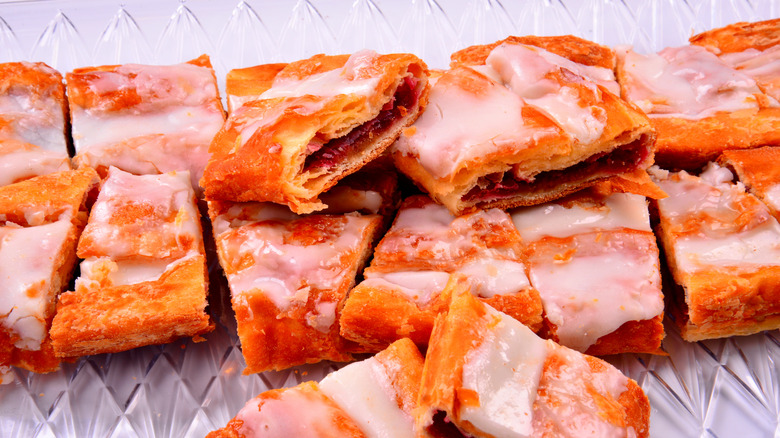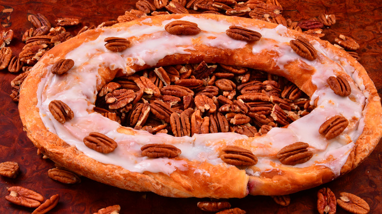 According to O&H Danish Bakery, based in Racine, Wisconsin, since 1949, "authentic" kringles take three full days to properly assemble. It's all about piety to old-world techniques. "We hand-form each Kringle individually, just like the bakers of Denmark made them in their kitchens centuries ago," explained third-generation owner Eric Olesen. "After rolling out the slightly sweet, tender dough, we add butter to each layer and let the Kringle rest overnight. We repeat that process for three days, resulting in a 36-layer pastry dough that is rich, yet light and flaky."