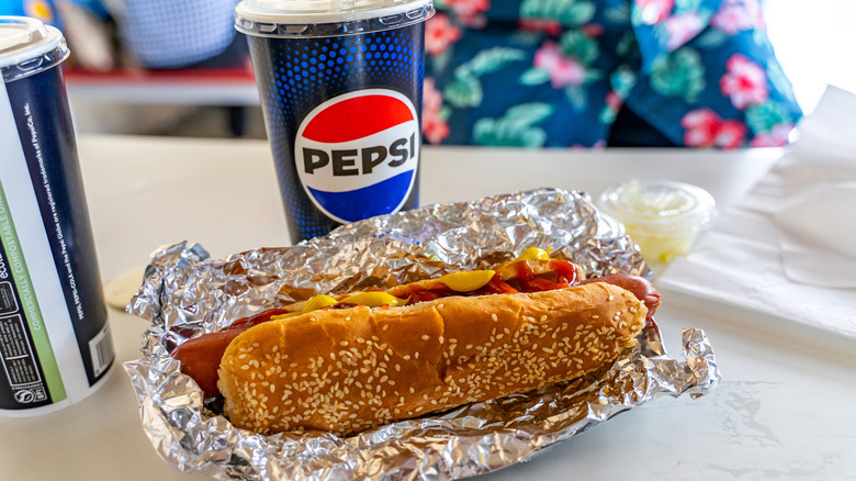 When it comes to food court mainstays, Costco hot dogs are in a league of their own. Flavorful and affordable, each one is packed with pure beefy convenience. One of the item's biggest claims to fame is that shoppers can snag a hot dog combo, complete with a fountain drink for less than $2. This longstanding deal makes heading to the food court after a long morning of bulk shopping a no-brainer. It may come as a surprise that this beloved food court item is produced by none other than Kirkland Signature, Costco's private label.