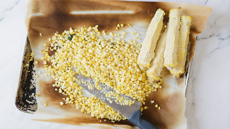 - Cut corn kernels from cobs and chop jalapeño, deseeding if desired.