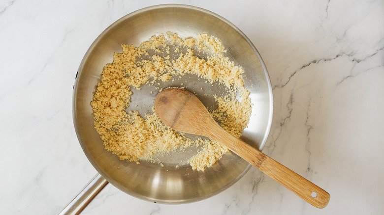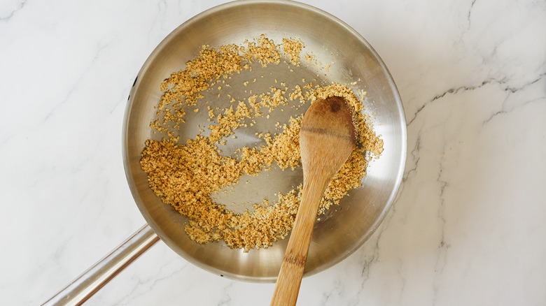 - In a skillet, toast panko in 1 tablespoon oil until golden.