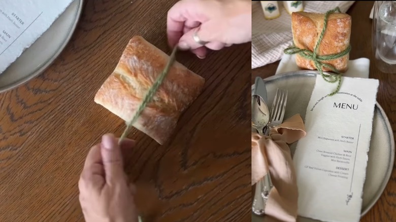 For stress-free hosting, you can even warm those rolls in the oven after tying 'em (as long as your tie of choice is oven-safe, of course) to fill your kitchen with intoxicating warm-bread aroma as guests file in (swoon). As Instagram foodie Krisi Monsivaiz shared in a post, "I even tied these mini baguettes ahead of time, then wrapped them in foil and warmed in a 350 [degree Fahrenheit] oven (yarn and all) for 5-10 minutes."