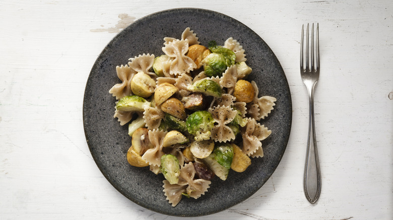 Starting with your favorite brand, such as Rao's Homemade Farfalle Pasta, there's a number of ways you can turn this into the lasagna-inspired bake of your dreams. Whether you want to keep your dish on the lighter side or load it up with a heavy meat sauce, these little bow ties will hold your sauce and fillings really well. Try making a mixed mushroom lasagna recipe with farfalle and enjoy not just the pasta swap but a different source of protein.