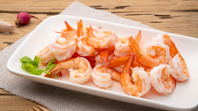 While we'll admit that there can be some exceptions depending on personal preference, Ina Garten's tip for shrimp tails is a pretty good rule to cook by. That fibrous part of the crustacean is made up of tough muscle tissue, along with chitin and chitosan, which are responsible for that hardened exterior. You may not want to bite into it, but the tail works as a built-in handle when you're using your fingers to munch on shrimp cocktail or navigate a seafood boil. It's pretty much a shrimp's version of the bone in a chicken drumstick; easy to bite the meat around, and easy to toss aside when you're done.