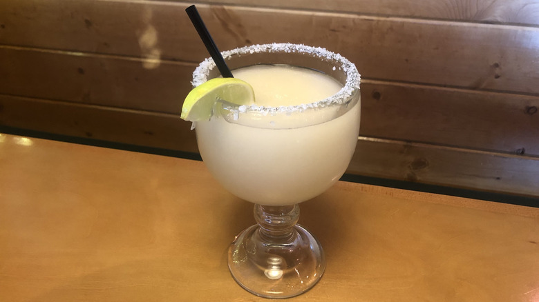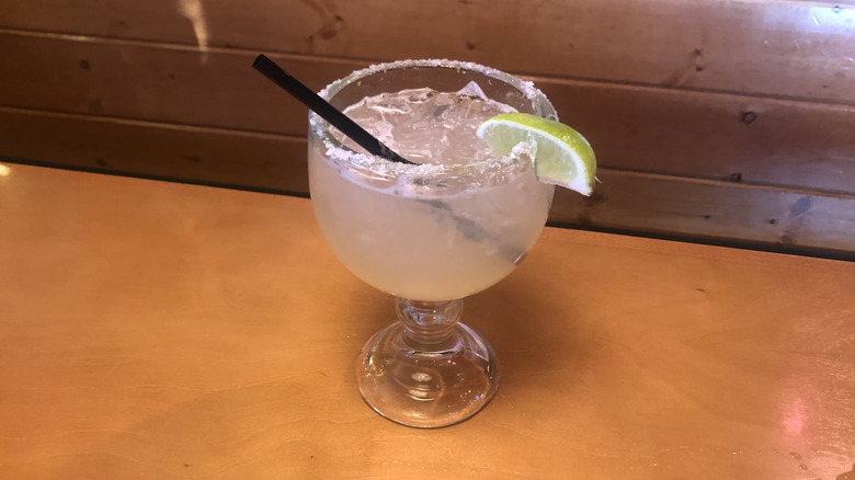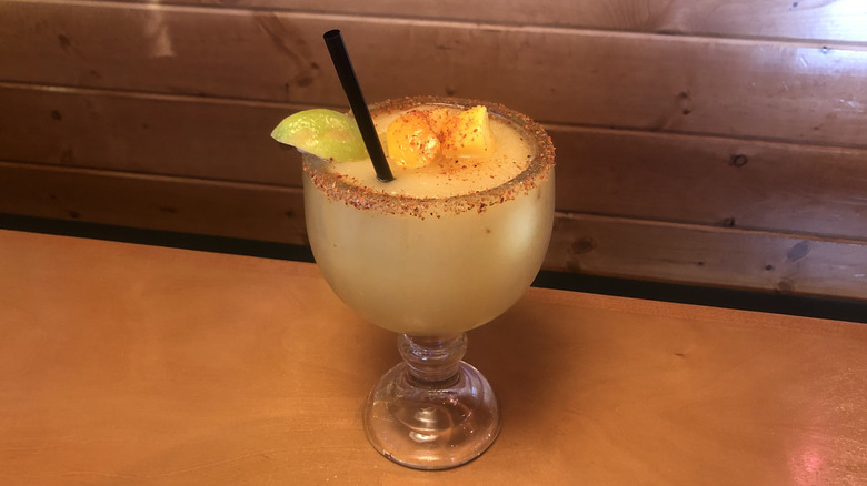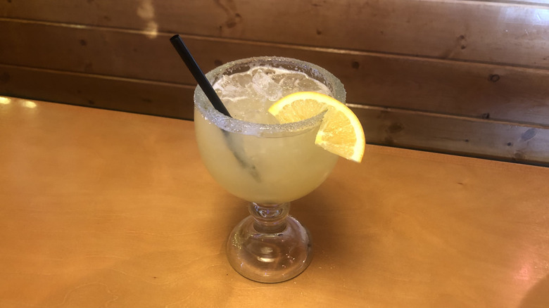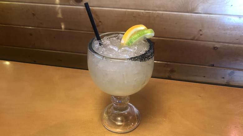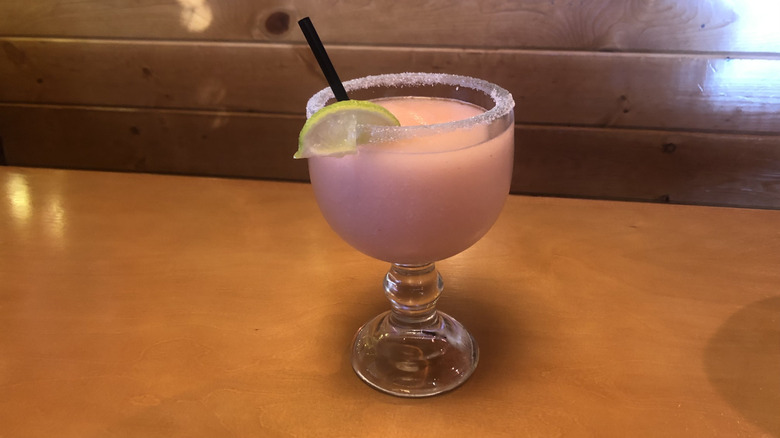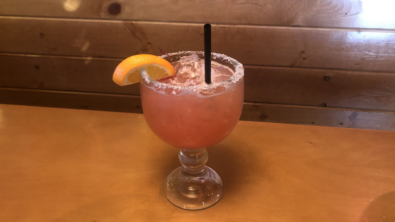 If you're browsing Texas Roadhouse's website, you won't find the Jamaican Cowboy mixed up with the likes of other margarita beverages. Instead, it's filed under cocktails, alongside Texas Roadhouse favorites like the Porch Rocker or the Island Cooler. However, it's allowed entry into this taste test — and onto the margarita page of the in-restaurant menu — thanks to the small splash of house margarita mix tacked onto the end of its recipe.