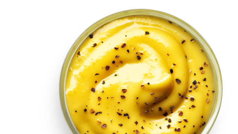 According to the McDonald's website, this dipping sauce is a "unique blend of zesty dijon mustard with sweet notes of honey, and a hint of spices." When you look at the official ingredient list, you'll see that sugar, distilled vinegar, water, soybean oil, corn syrup solids, egg yolks, honey, and mustard seed are the main ingredients. This is what gives the honey mustard its signature taste.
