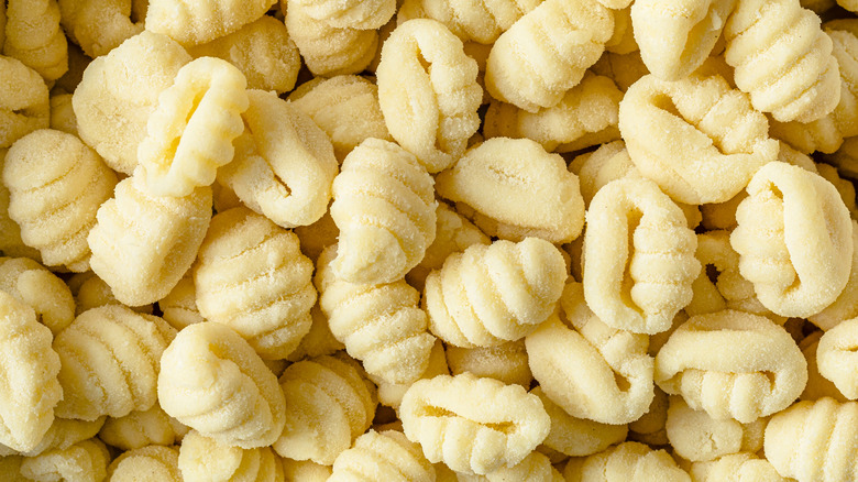 Potato gnocchi are made by steaming starchy spuds until soft, ricing them into a smooth grain, whipping in flour, eggs, and salt, then shaping the resulting dough into individual dumplings to boil. Foodies in Italy have been shaping potatoes into gnocchi since at least the 1600s. But, to truly ascertain the origin of these little dumplings, it's necessary to trace the potato's arrival in Italy in the first place. Even the word "gnocchi" itself has unclear etymological origins. Some linguistic historians trace the word to the Venetian "gnocco" (or "nocca") meaning "knuckles" or the German "knöchel," a nod to the gnarled dumplings' sauce-capturing ridges. Others link the word to "knohha" of the Gallo-Italic Lombard dialect of Northern Italy, meaning "knot."