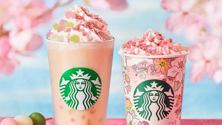 Every year, people from all over the world come to Japan to see the cherry blossoms in full bloom, a practice known locally as hanami. The drink itself is inspired by the flavors of the sweet, colored rice dumplings which are traditionally eaten at the same time. In this seasonal drink, the colorful dangos and pink, miniature, flower-shaped pieces of feuillantine (which is a biscuit made from crepes) are garnished over a hanami an and strawberry-flavored Frappuccino, bringing the full hanami experience to you.