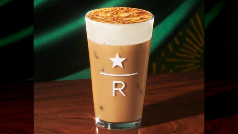 A seasonal beverage as unique as these signs are, this 2024 Starbucks Reserve holiday drink stands apart from others on the Starbucks menu (Reserve or otherwise) because of its caramelized sugar crust. Made with Starbucks Reserve espresso, eggnog, milk, and a caramel brûlée sauce — all poured over ice and finished with a cold foam — this drink is given an extra flare with the help of a hand torch.